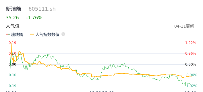 04月11日,新洁能收报35.26,股价涨幅-1.76%,成交金额1.95亿元,换手率1.84%。