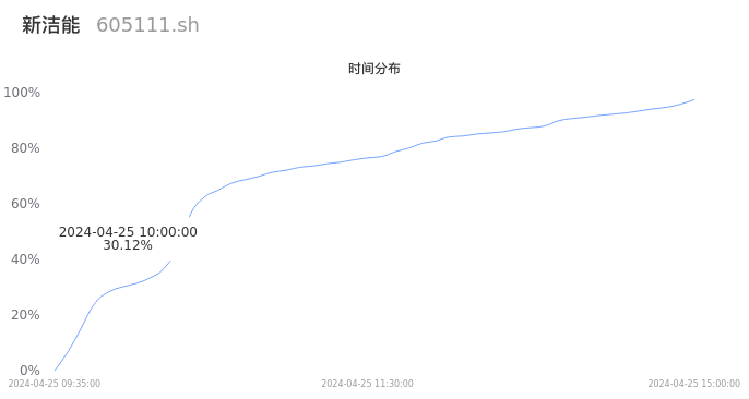 根据成交分布分析,该股票当天放量成交,成交清淡。时间上看,早盘前半小时成交量占据当天总成交量的30.12%;价格上看,成交呈现右偏峰。成交分布分析主要研究股票成交的分布特性,不具有预测功能,请知悉。