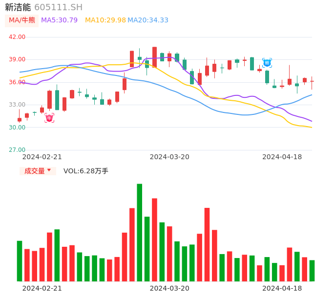 04月18日,新洁能收报36.14,股价涨幅-1.04%,成交金额2.26亿元,换手率2.11%。