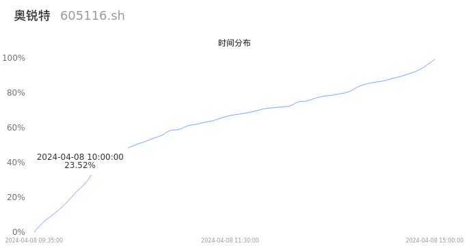605116奥锐特2024年04月08日成交1.28万手,成交金额2789.37万元,相较昨日放量4378手,换手率0.32%,成交清淡。