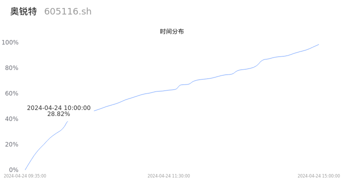 根据成交分布分析,该股票当天缩量成交,成交清淡。时间上看,早盘前半小时成交量占据当天总成交量的28.82%;价格上看,成交呈现中间峰。成交分布分析主要研究股票成交的分布特性,不具有预测功能,请知悉。