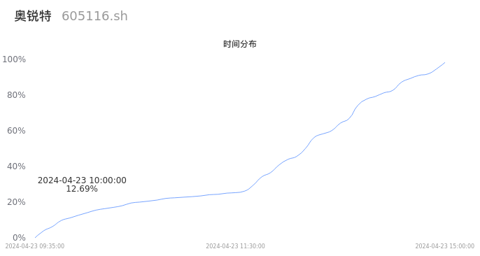 根据成交分布分析,该股票当天缩量成交,成交清淡。时间上看,早盘前半小时成交量占据当天总成交量的12.69%;价格上看,成交呈现右偏峰。成交分布分析主要研究股票成交的分布特性,不具有预测功能,请知悉。