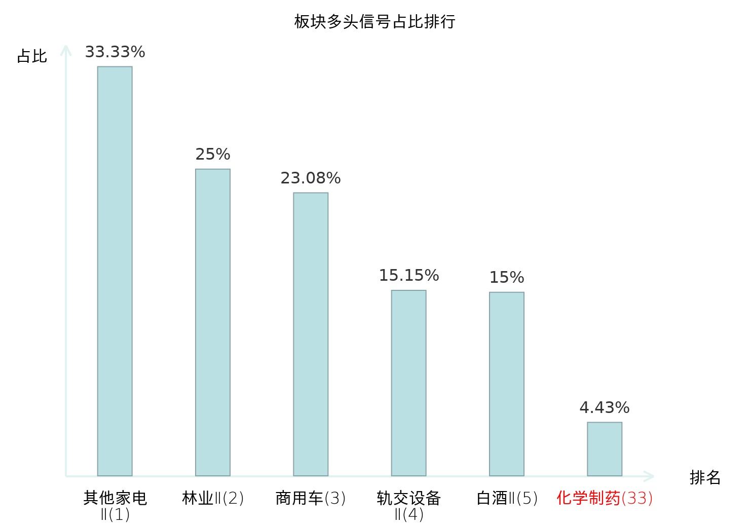 全市场所有行业板块中主力多头信号占比排名中,其他家电Ⅱ板块位居第一。其他家电Ⅱ板块名次提升最快,较昨日上升128位。