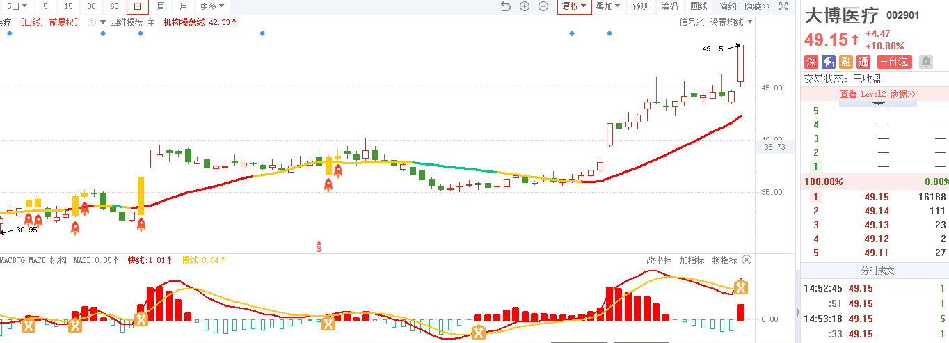 2)20250804-大博医疗-四维操盘-近期出现火箭信号且底部量柱由绿转红