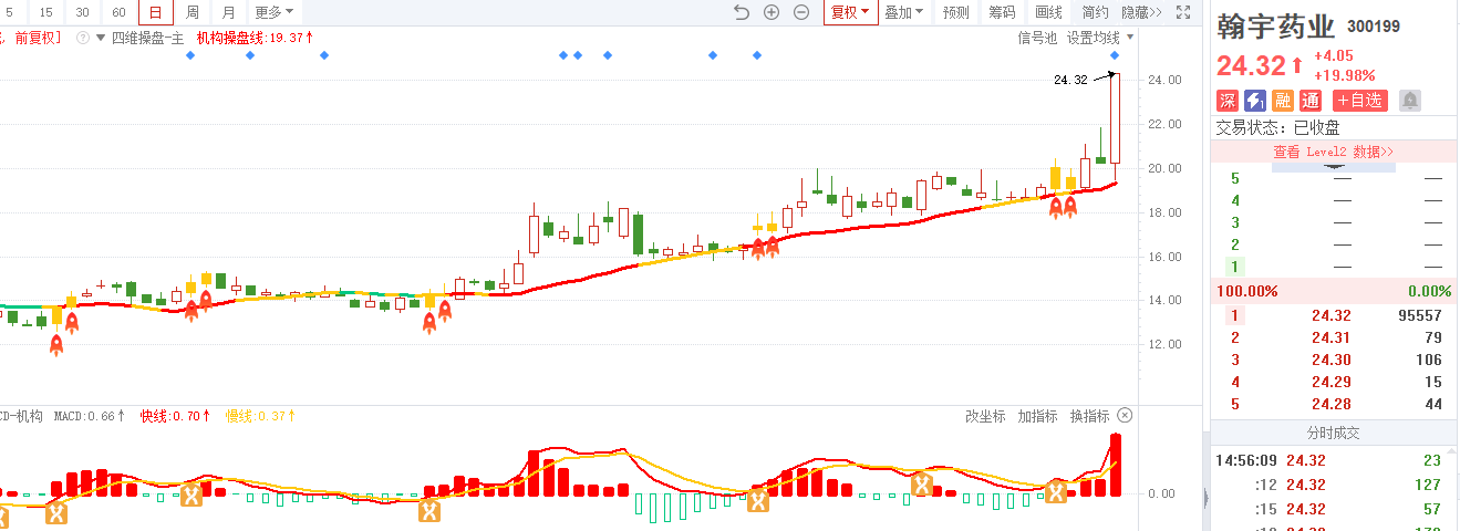 1)20250804-翰宇药业-四维操盘-近期出现火箭信号且底部量柱由绿转红