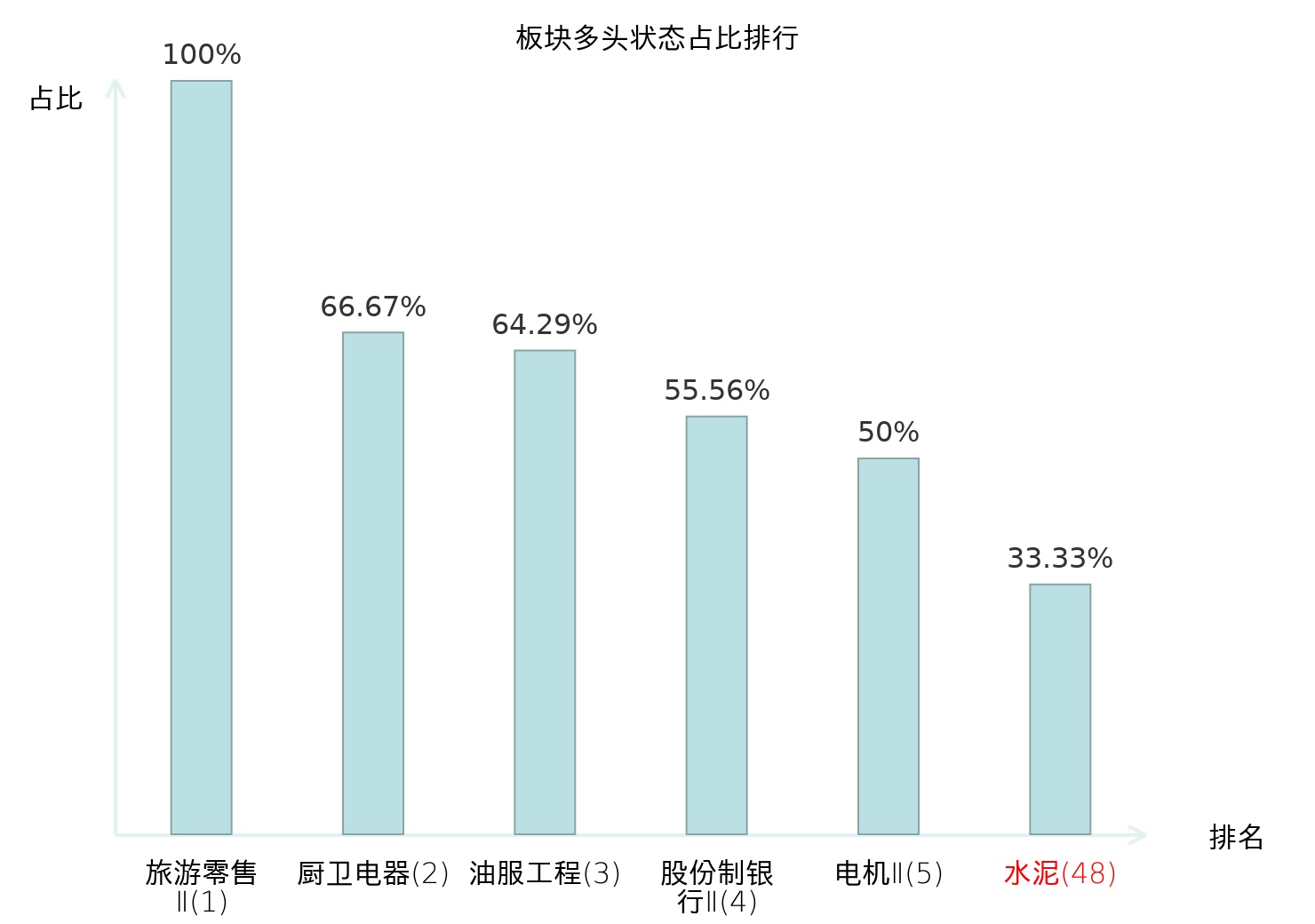 全市场所有行业板块中主力多头状态占比排名中,旅游零售Ⅱ板块位居第一。航海装备Ⅱ板块名次提升最快,较昨日上升78位。