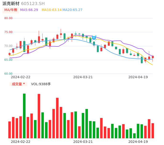 04月19日,派克新材收报66.40,股价涨幅0.42%,成交金额6147.75万元,换手率0.77%。