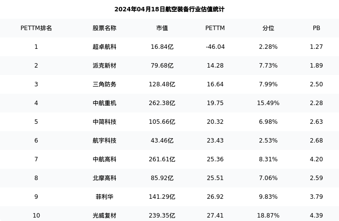 从估值角度看:派克新材最新市盈率PETTM为14.28,在行业内排名1/44,处于7.73分位。