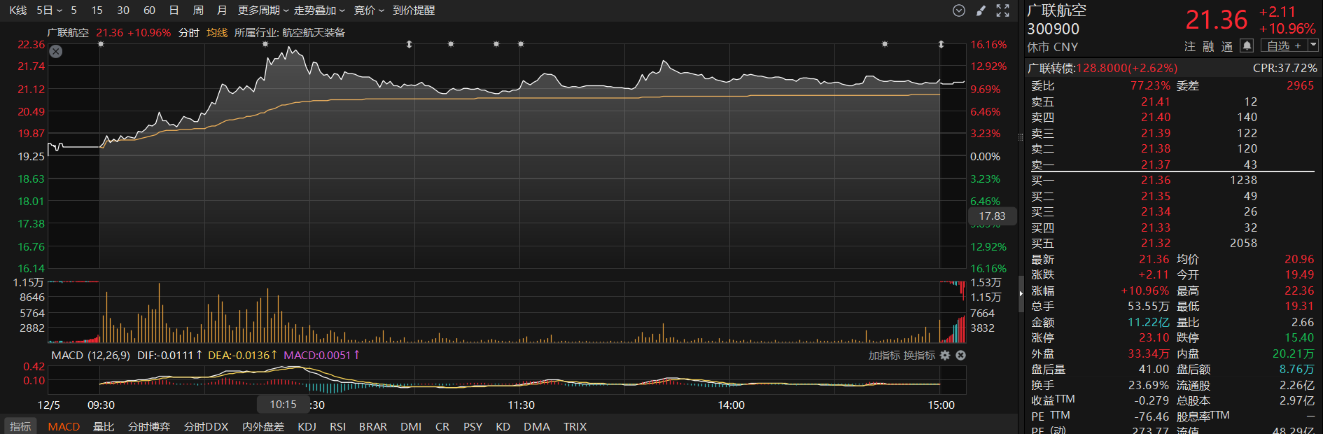 广联航空周四发布机构调研纪要表示,公司积极响应“做强星箭制造、完善产业链协同、推动技术自主可控”等核心目标,通过“收购优质标的+深度产学研合作”的双路径,快速切入商业航天产业核心环节。目前已形成“运载火箭关键结构件+航天器配套组件”的双维度业务矩阵,覆盖商业火箭箭体结构、卫星结构部件等核心产品领域。二级市场上,广联航空周五收盘涨近11%。