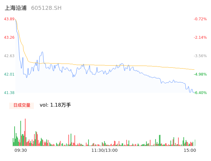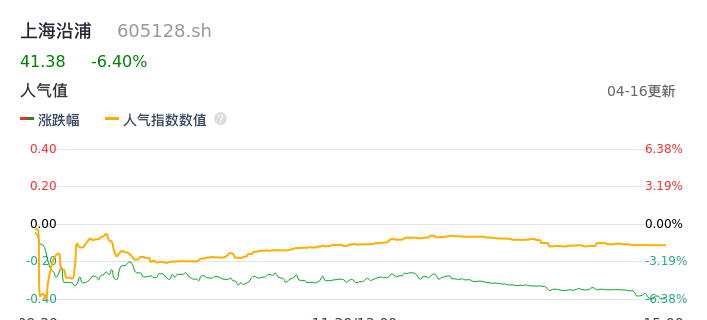 04月16日,上海沿浦收报41.38,股价涨幅-6.40%,成交金额4978.09万元,换手率1.48%。