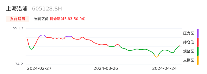 我们来看一下该股的九方特色指标强弱趋势的情况:上海沿浦近日从观望区上穿到持仓区。股价短期站稳多头区域,上升动能仍较为充足,可积极关注。后续重点关注上方压力位:50.04元是否能突破上攻。