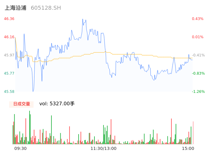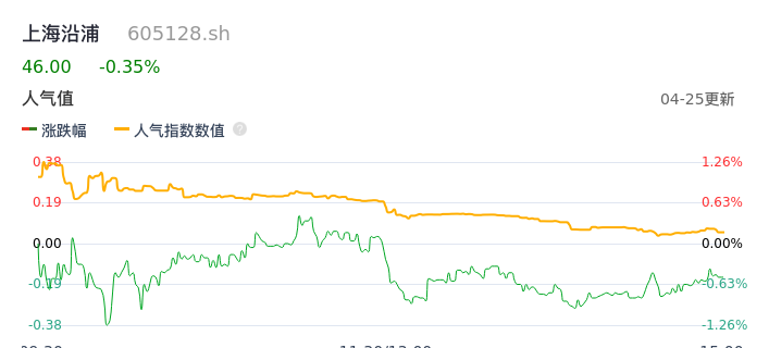 04月25日,上海沿浦收报46.00,股价涨幅-0.35%,成交金额2447.11万元,换手率0.67%。