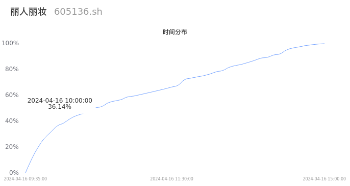 605136丽人丽妆2024年04月16日成交10.37万手,成交金额6943.16万元,相较昨日放量2655手,换手率2.59%,成交清淡。
