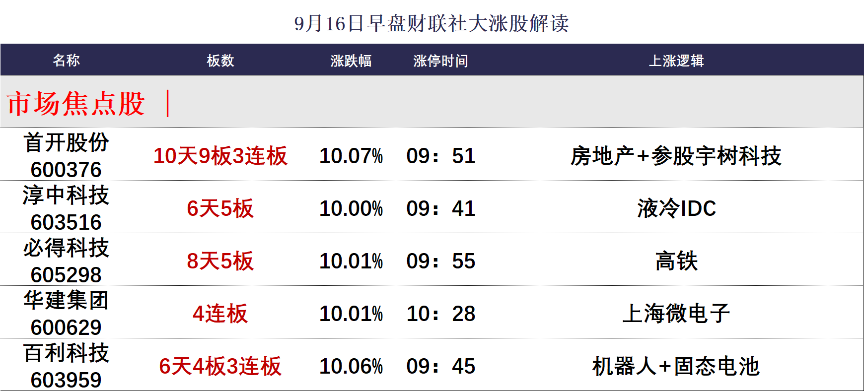 财联社9月16日讯,今日70股涨停,28股炸板,封板率为71%,华建集团4连板,首开股份10天9板,上海建工香江控股山子高科荣盛发展3连板,线上线下20cm2连板,百利科技6天4板,淳中科技6天5板,必得科技8天5板,天际股份9天5板。今日市场震荡走高,创业板指一度跌幅超过1%,午后回升翻红,指数黄白线分化,中小盘股表现较强。沪深两市成交额2.34万亿,较上一个交易日放量640亿。盘面上,市场情绪明显回暖,个股涨多跌少,全市场超3600只个股上涨。板块方面,机器人、互联网电商、物流等板块涨幅居前,猪肉、有色金属、影视院线等板块跌幅居前。截至收盘,沪指涨0.04%,深成指涨0.45%,创业板指涨0.68%。