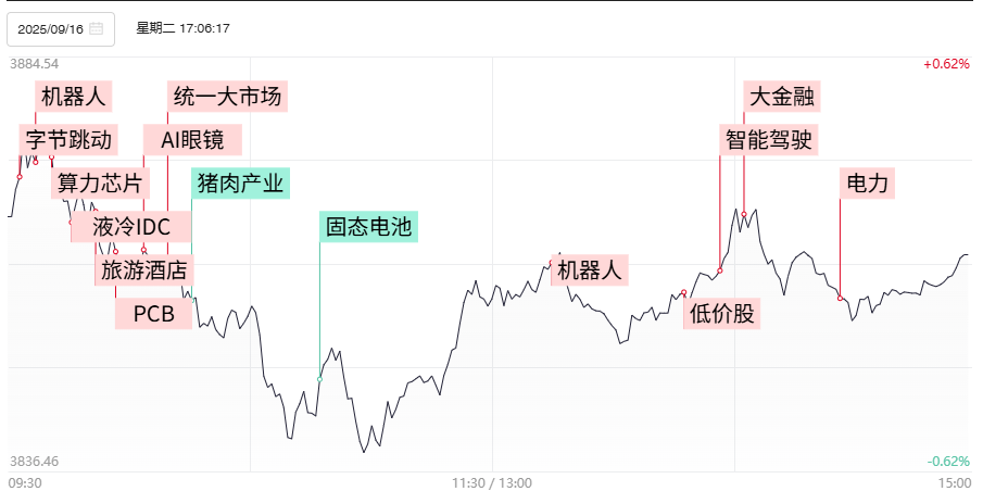 9月16日,2025腾讯全球数字生态大会举行,会上腾讯云宣布,目前腾讯已经全面适配主流的国产芯片,并积极参与和回馈开源社区。国产算力方向受此提振继续走出相对独立行情,海光信息中科曙光盘中创出历史新高,龙芯中科一度触及涨停,而人气龙头寒武纪午后也一度站上1500元大关,此外受到华为CANN全面开源开放专题会议将召开的消息刺激,华为算力方向也一度异动,人气股华胜天成早早封于涨停。而受到英伟达推动MLCP(微通道水冷板)的水冷散热组件刺激,人气股淳中科技反包涨停走出6天5板,带动液冷概念表现偏强,但无论是PCB还是CPO概念的整体强度,仍取决于胜宏科技新易盛等权重大票短期表现。