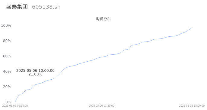 605138盛泰集团2025年05月06日成交7.32万手,成交金额4500.38万,相较昨日放量2.52万手,换手率1.32%,成交清淡。
