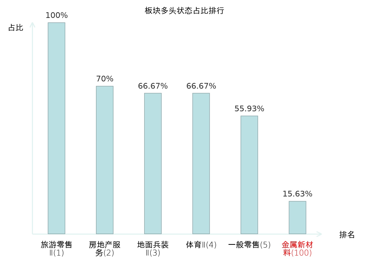 全市场所有行业板块中主力多头状态占比排名中,旅游零售Ⅱ板块位居第一。林业Ⅱ板块名次提升最快,较昨日上升68位。