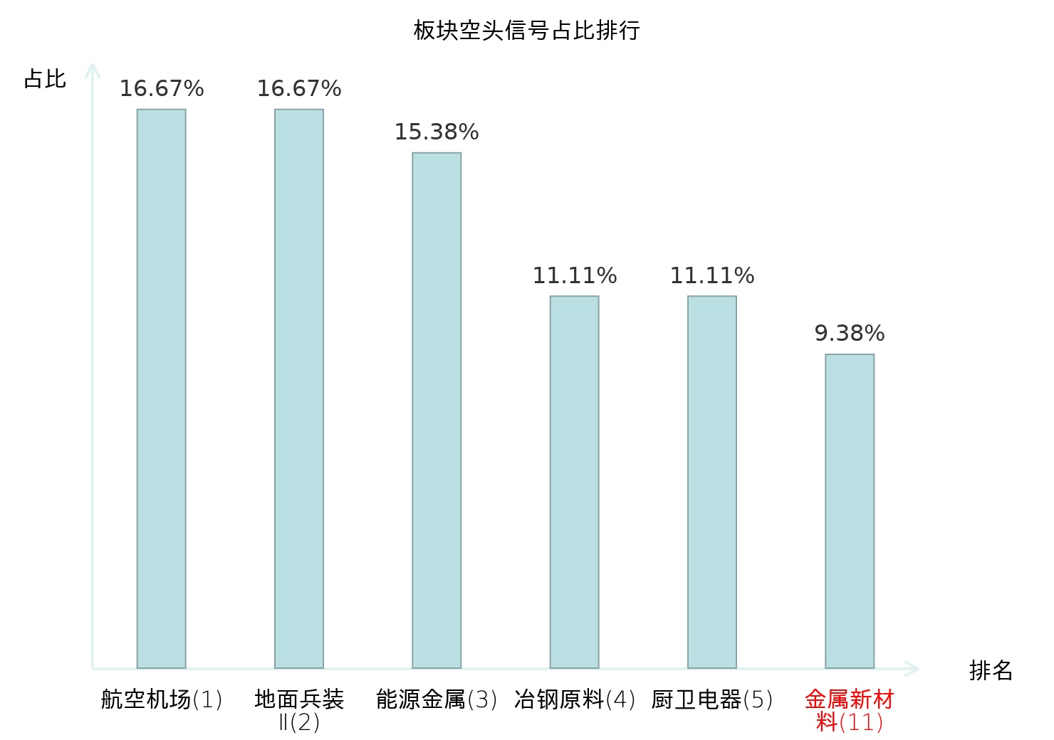 全市场所有行业板块中主力空头信号占比排名中,航空机场板块位居第一。家电零部件Ⅱ板块名次提升最快,较昨日上升110位。