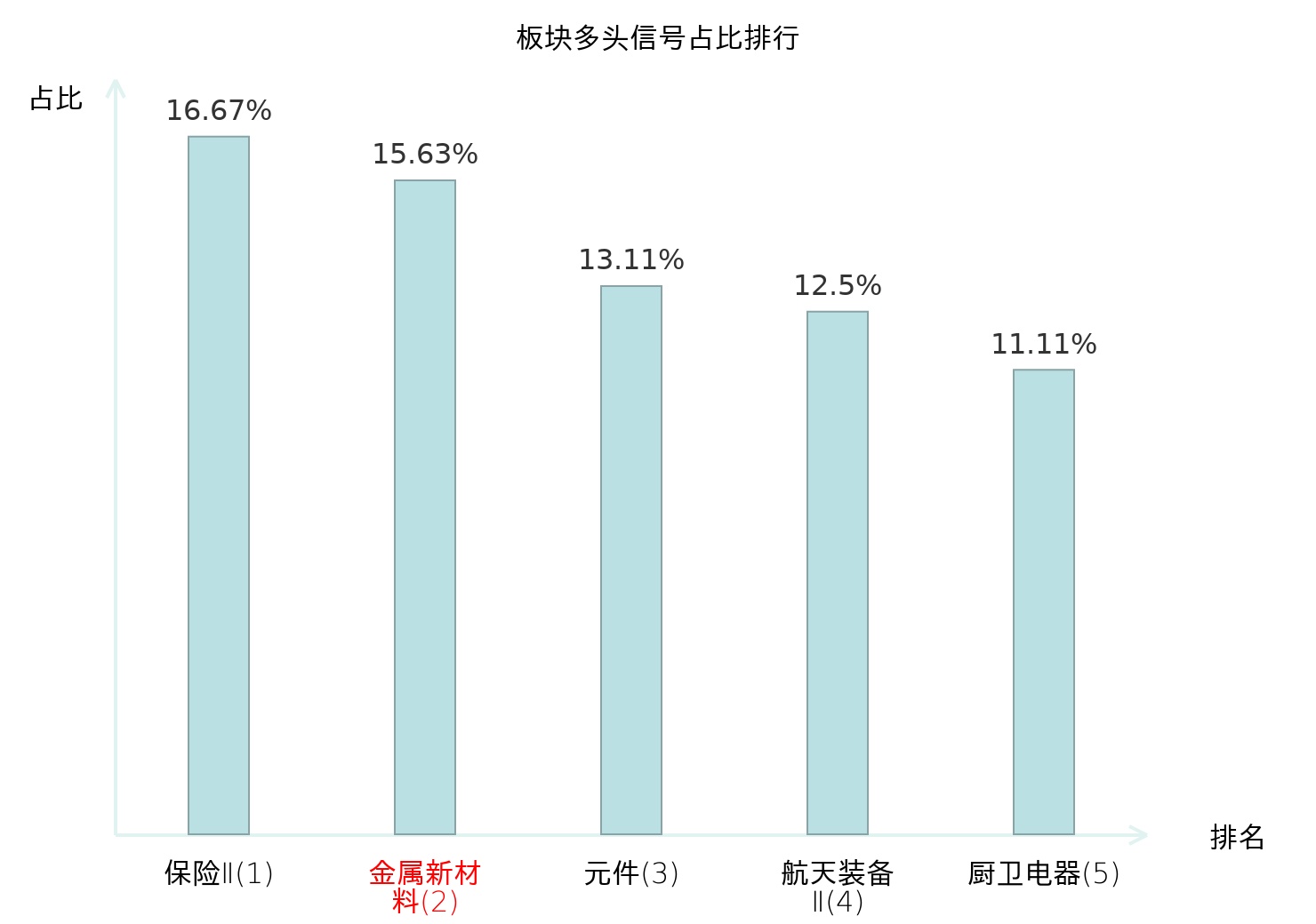 全市场所有行业板块中主力多头信号占比排名中,保险Ⅱ板块位居第一。保险Ⅱ板块名次提升最快,较昨日上升123位。