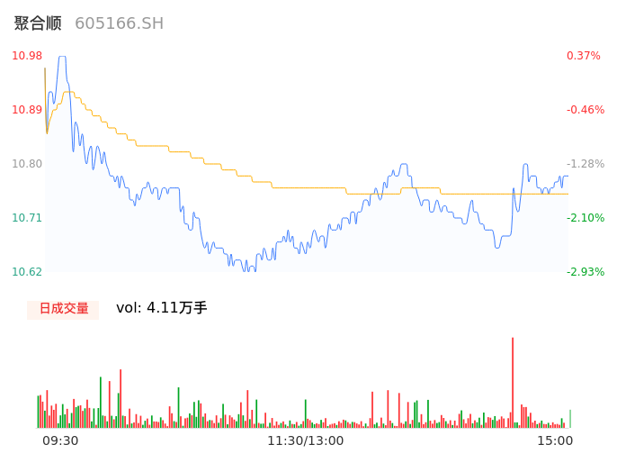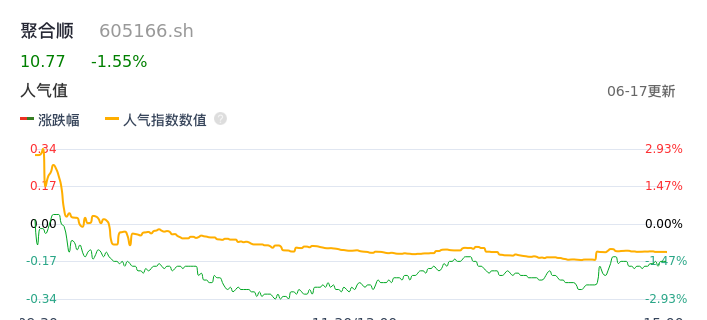 06月17日,聚合顺收报10.77,股价涨幅-1.55%,成交金额4414.68万,换手率1.30%。