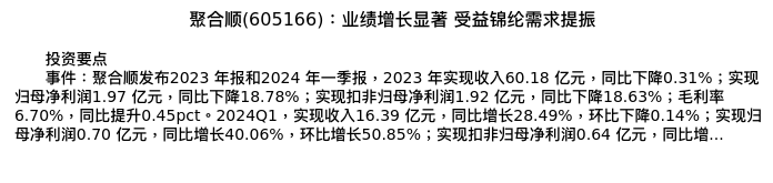 值得注意的是:2024年06月华金证券的骆红永分析师,首次发布关于聚合顺的研究报告,标题为:聚合顺(605166):业绩增长显著 受益锦纶需求提振。