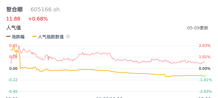 05月09日,聚合顺收报11.88,股价涨幅0.68%,成交金额2862.77万元,换手率0.76%。