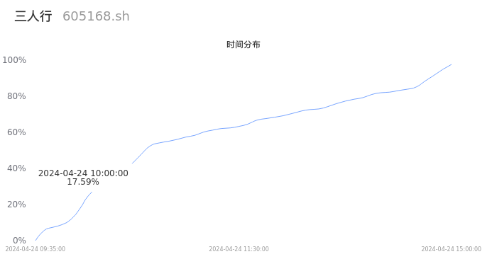 605168三人行2024年04月24日成交2.81万手,成交金额1.53亿元,相较昨日放量8874手,换手率1.92%,成交清淡。
