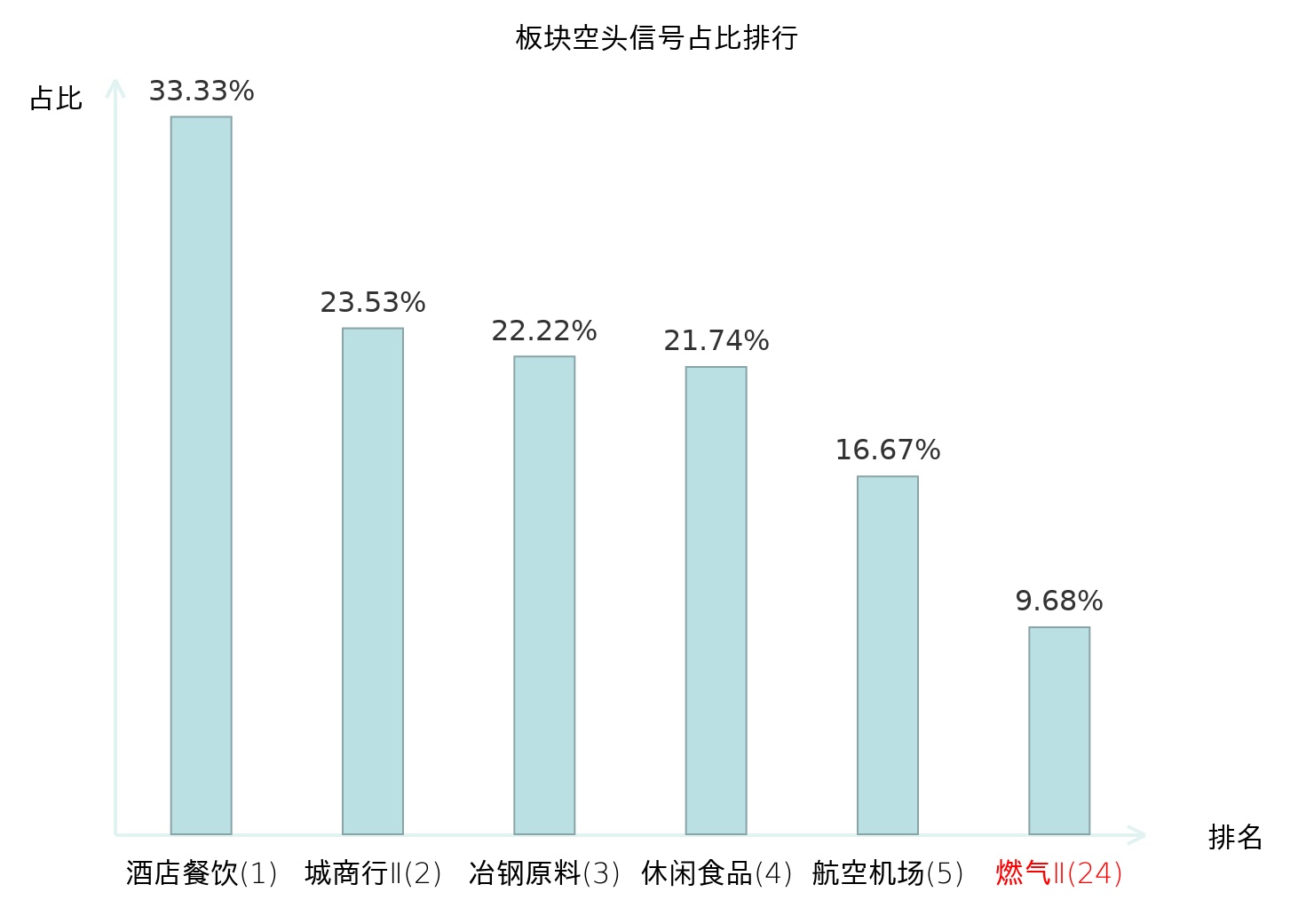 全市场所有行业板块中主力空头信号占比排名中,酒店餐饮板块位居第一。装修建材板块名次提升最快,较昨日上升113位。