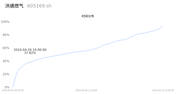 605169洪通燃气2024年04月26日成交9.99万手,成交金额8321.04万元,相较昨日缩量7791手,换手率7.54%,成交清淡。