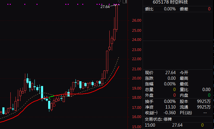 值得一提的是,时空科技股价在7月24日停牌前出现明显异动,走出七连阳强势行情。行情数据显示,7月15日至7月23日,时空科技7个交易日累计涨幅42.11%,7月23日,时空科技收于涨停,股价为27.64元/股,创近一年半新高,最新市值27亿元。