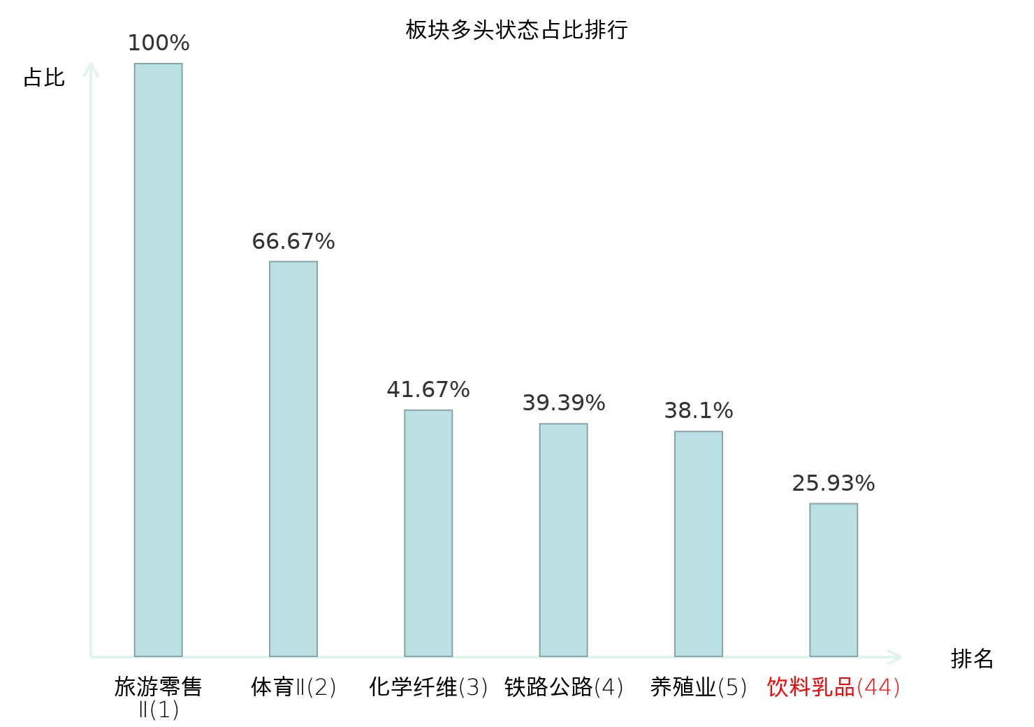 全市场所有行业板块中主力多头状态占比排名中,旅游零售Ⅱ板块位居第一。旅游零售Ⅱ板块名次提升最快,较昨日上升130位。