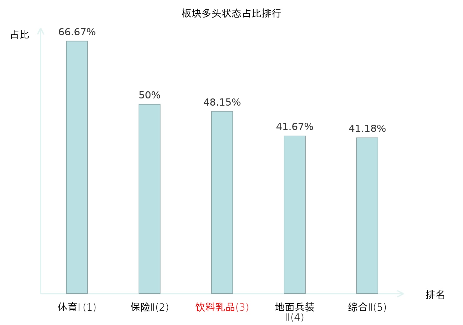 全市场所有行业板块中主力多头状态占比排名中,体育Ⅱ板块位居第一。种植业板块名次提升最快,较昨日上升70位。