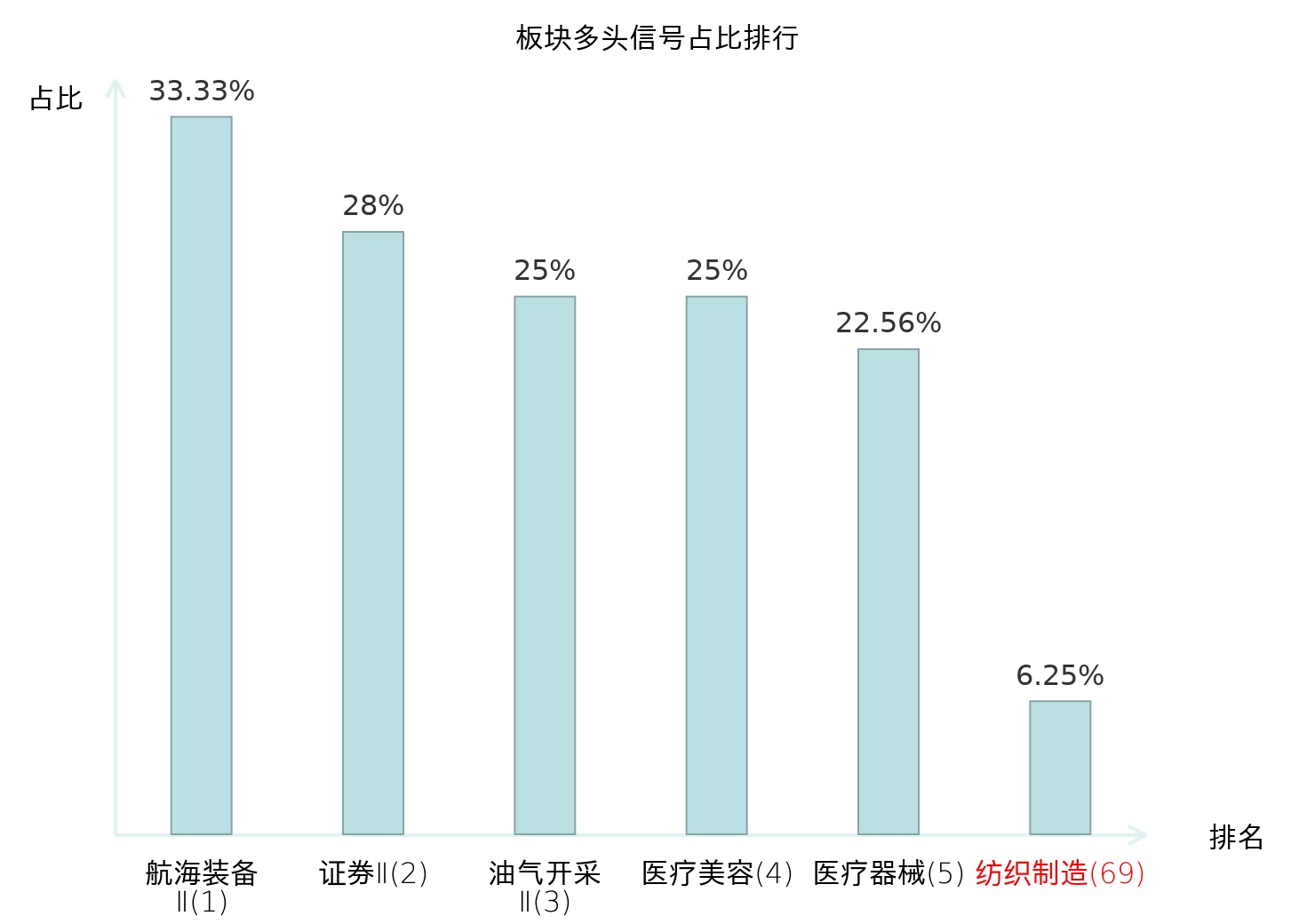全市场所有行业板块中主力多头信号占比排名中,航海装备Ⅱ板块位居第一。油气开采Ⅱ板块名次提升最快,较昨日上升123位。
