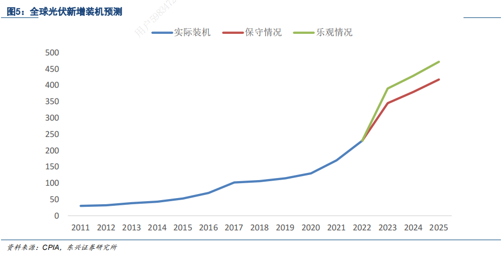 从成本角度看,光伏焊带的原材料主要为铜材和锡合金,直接材料成本占比超过90%。“双碳”目标下,全球光伏新增装机增长,带动光伏组件需求持续增长。根据CPIA的数据,2023年全球光伏新增装机量预测为345-390GW,同比增长50%-70%,若未来几年全球新增装机复合增速能达到10%,则2025年新增全球装机量将达417-