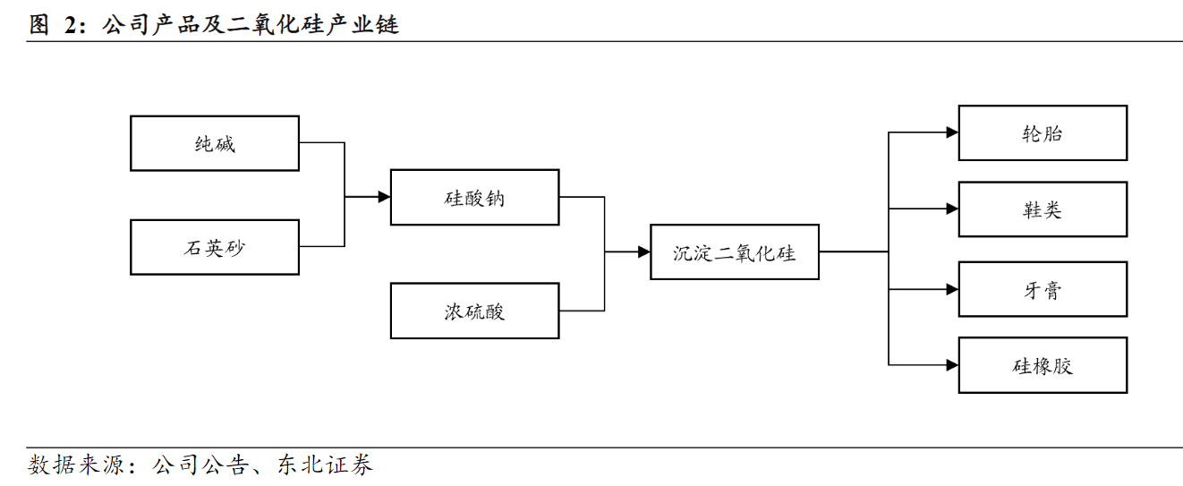 公司主要从事沉淀法二氧化硅产品的研发、制造和销售,产品主要用于橡胶工业、饲料添加剂等领域。主要产品为橡胶工业用二氧化硅—高分散型和传统型、饲料添加剂二氧化硅、其他应用二氧化硅,公司还生产、销售少量硫酸等产品。