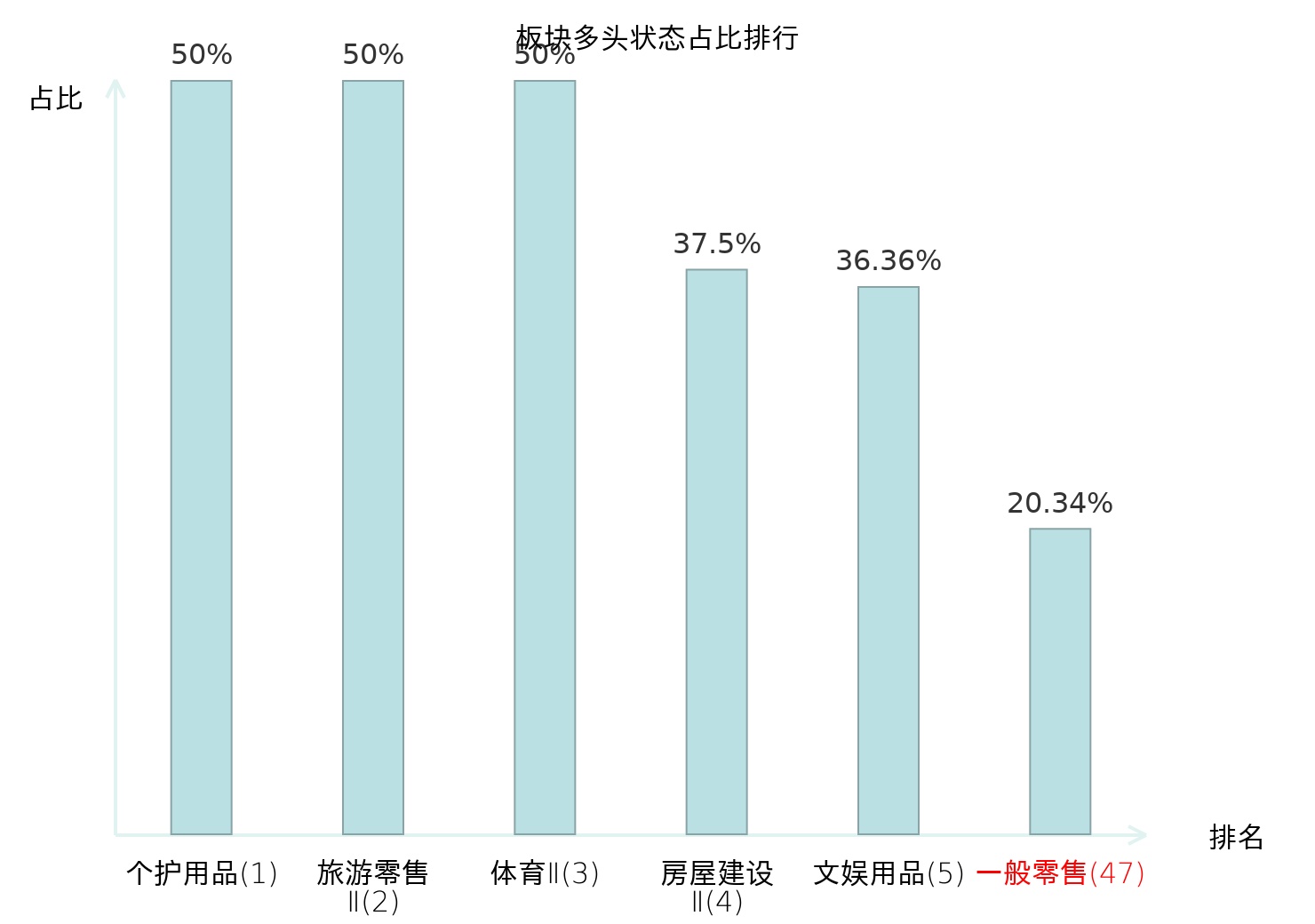全市场所有行业板块中主力多头状态占比排名中,个护用品板块位居第一。焦炭Ⅱ板块名次提升最快,较昨日上升68位。