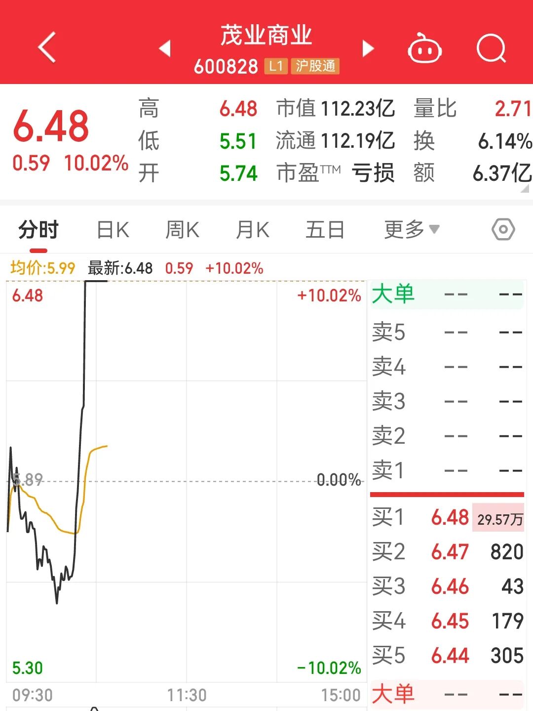 12月9日早盘约10:13左右,A股商业连锁板块突然大幅拉升。茂业商业(600828)在10分钟内由绿盘直线拉升,并触及“10cm”涨停;永辉超市、中央商场、三江购物、国光连锁、广百股份等也跟随上涨。
