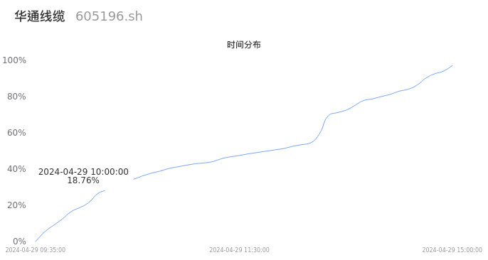 605196华通线缆2024年04月29日成交14.69万手,成交金额1.61亿元,相较昨日放量3.87万手,换手率4.51%,成交清淡。