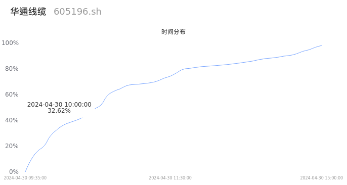 605196华通线缆2024年04月30日成交32.65万手,成交金额3.53亿元,相较昨日放量17.96万手,换手率10.02%,成交活跃。