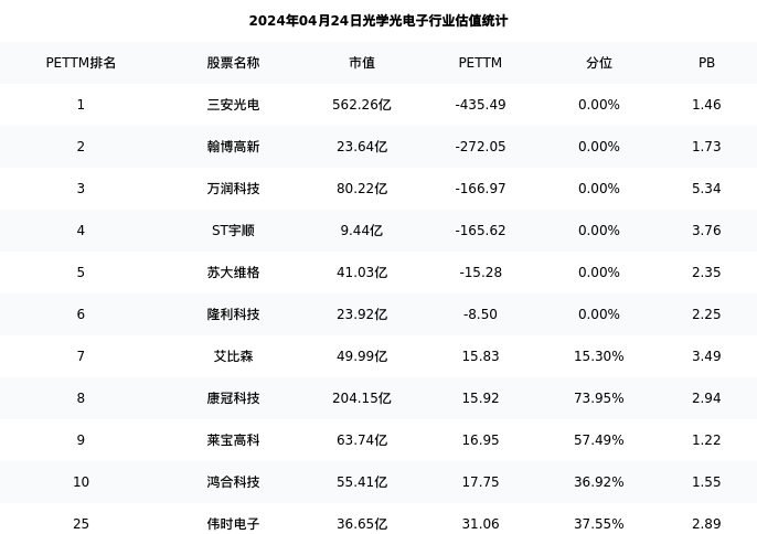 从估值角度看:伟时电子最新市盈率PETTM为31.06,在行业内排名19/93,处于37.55分位。