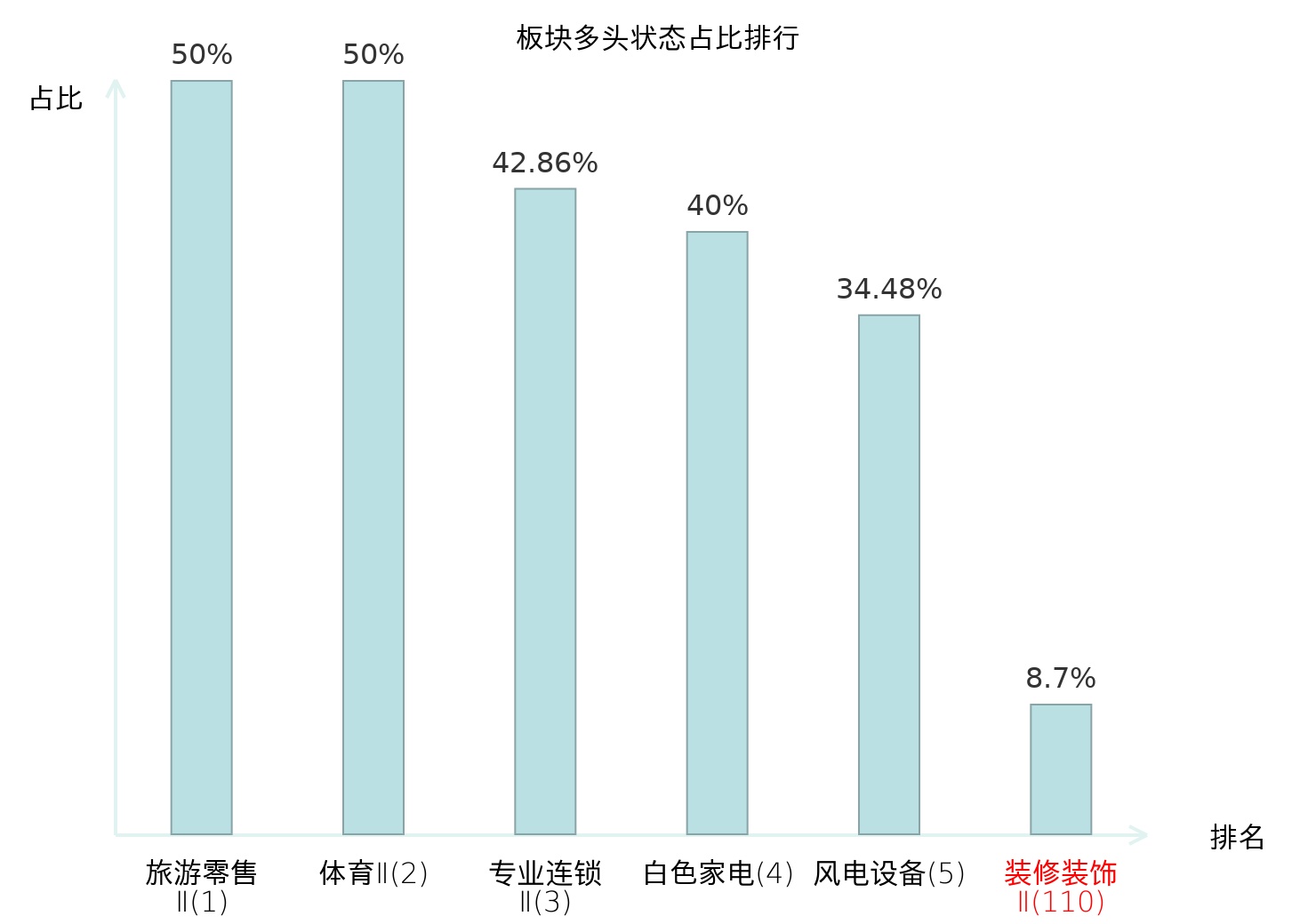 全市场所有行业板块中主力多头状态占比排名中,旅游零售Ⅱ板块位居第一。能源金属板块名次提升最快,较昨日上升50位。