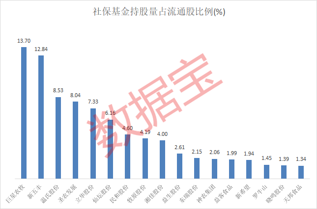 从三季度末社保基金持仓来看,温氏股份、牧原股份持股量居前,分别为4.63亿股、1.52亿股;圣农发展、新希望和新五丰的社保基金持股量也均在8000万股以上。从社保基金持股量占流通股比例来看,巨星农牧、新五丰、温氏股份、圣农发展排名前四,依次为13.7%、12.84%、8.53%、8.04%。