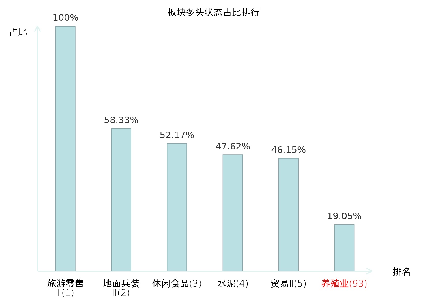 全市场所有行业板块中主力多头状态占比排名中,旅游零售Ⅱ板块位居第一。焦炭Ⅱ板块名次提升最快,较昨日上升82位。
