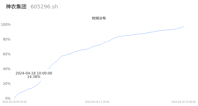 605296神农集团2024年04月18日成交4.30万手,成交金额1.59亿元,相较昨日放量6337手,换手率6.37%,成交清淡。