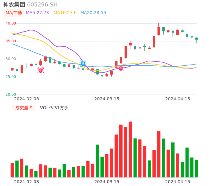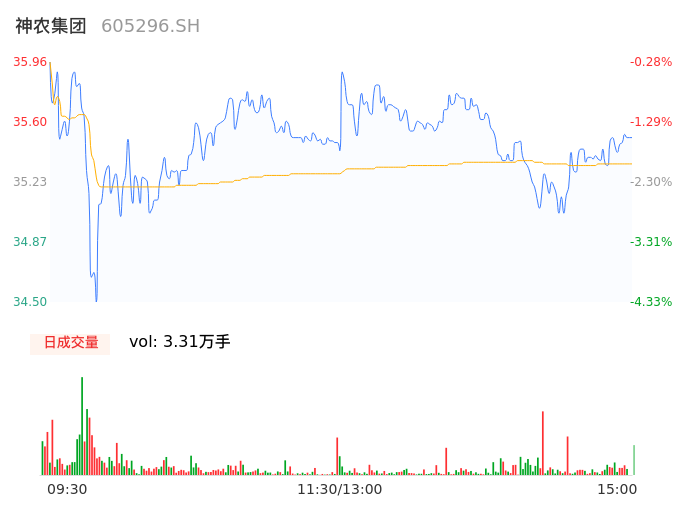 04月15日,神农集团收报35.45,股价涨幅-1.69%,成交金额1.17亿元,换手率4.90%。