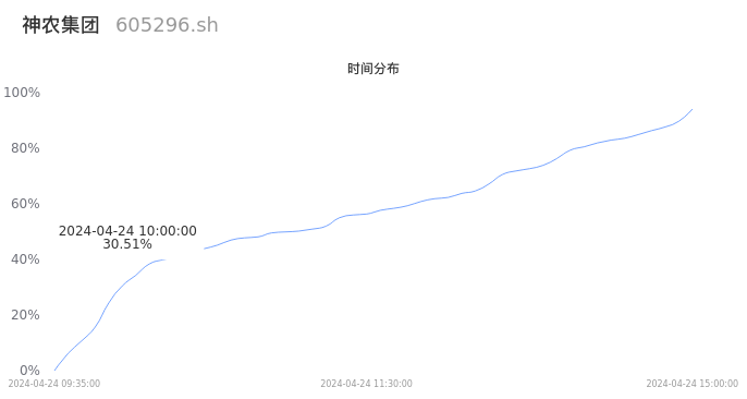605296神农集团2024年04月24日成交2.96万手,成交金额1.13亿元,相较昨日缩量1.36万手,换手率4.37%,成交清淡。