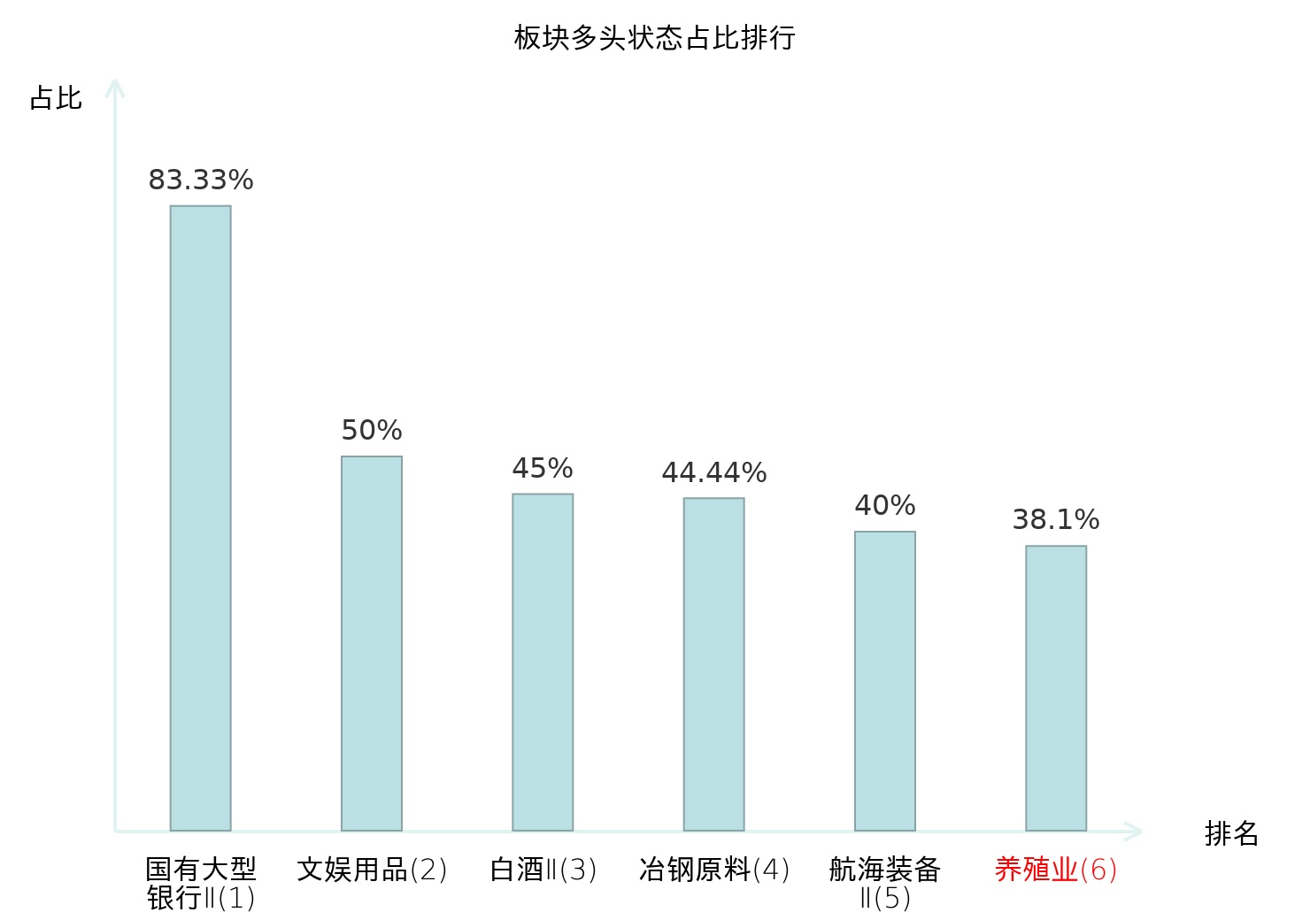 全市场所有行业板块中主力多头状态占比排名中,国有大型银行Ⅱ板块位居第一。其他家电Ⅱ板块名次提升最快,较昨日上升116位。