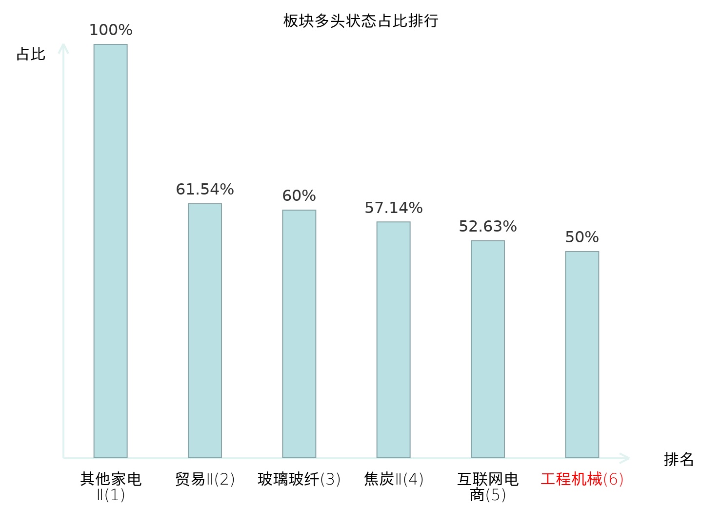 全市场所有行业板块中主力多头状态占比排名中,其他家电Ⅱ板块位居第一。教育板块名次提升最快,较昨日上升50位。