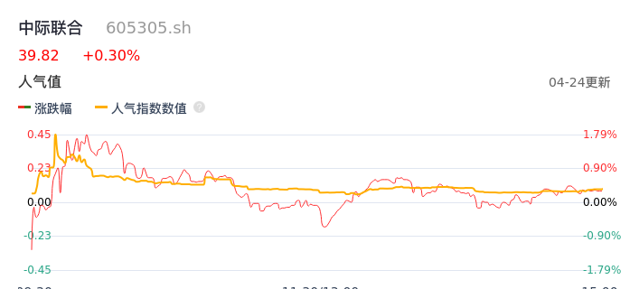 04月24日,中际联合收报39.82,股价涨幅0.30%,成交金额6946.29万元,换手率1.64%。