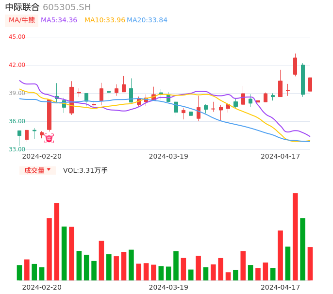 04月17日,中际联合收报40.65,股价涨幅4.61%,成交金额1.33亿元,换手率3.12%。